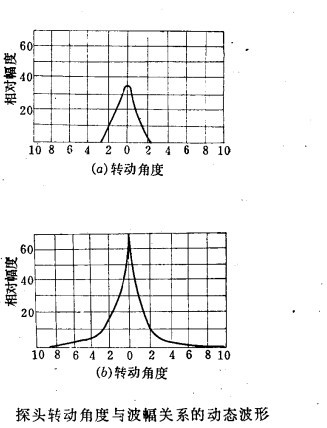 3.探頭轉(zhuǎn)動角度與波幅關(guān)系的動態(tài)波形圖 這種波形圖 用斜探頭測繪出,適用于平面工件中具有垂直或傾斜方向缺陷的定性。下圖所示為單個點缺陷和線狀缺陷的動態(tài)波形圖。從圖中看出單個而較小的點狀缺陷,探頭稍微轉(zhuǎn)動,則缺陷波立即消失。而線狀缺陷(如裂紋),其缺陷波幅隨探頭轉(zhuǎn)動角度的增大而下降直至消失。所謂轉(zhuǎn)動角度,系指發(fā)現(xiàn)缺陷波的最大值處為零,再將斜探頭轉(zhuǎn)動至缺陷波消失,則波束中心線與缺陷波最大值時的夾角。
