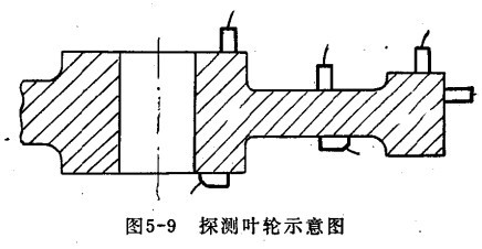 (二)盤類鍛件的探傷 盤類鍛件(如汽輪機葉輪)是在高溫、高壓、高速下工作的,不允許存在白點、裂紋等缺陷。需探測的葉輪表面光潔度不應低于?6,超聲波探傷儀探測部位應以缺陷集中且承受應力最大的輪殼為主。葉輪中的缺陷多垂直于鍛壓方向,故應以鍛壓方向垂直的端面作為主要探測面。探測時,以直探頭為主。直探頭探測能有效的發(fā)現(xiàn)平行于探測面的缺陷。同時,可用斜探頭(或直探頭在葉輪外圓周上)探測與葉輪端面垂直或傾斜的缺陷,如下圖所示。