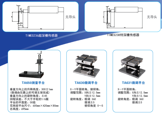 PC軟件、通訊電纜、TA650測量平臺、TA630微調(diào)平臺、TA631微調(diào)平臺、專用打印機、平臺支架、多種傳感器